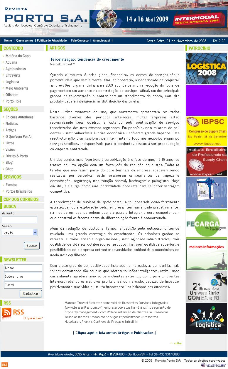 Revista Porto S. A. - Terceirização: tendência de crescimento