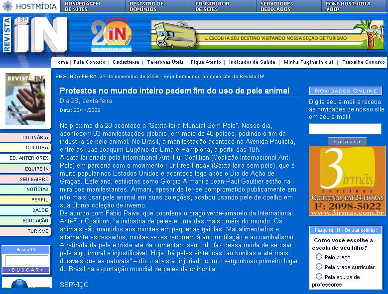 Revista IN on line - Protestos no mundo inteiro pedem fim do uso de pele animal