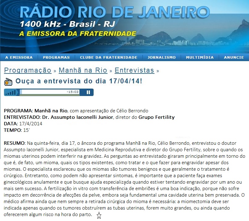 RÁDIO RIO DE JANEIRO - Entrevista com Dr. Assumpto Iaconelli Junior