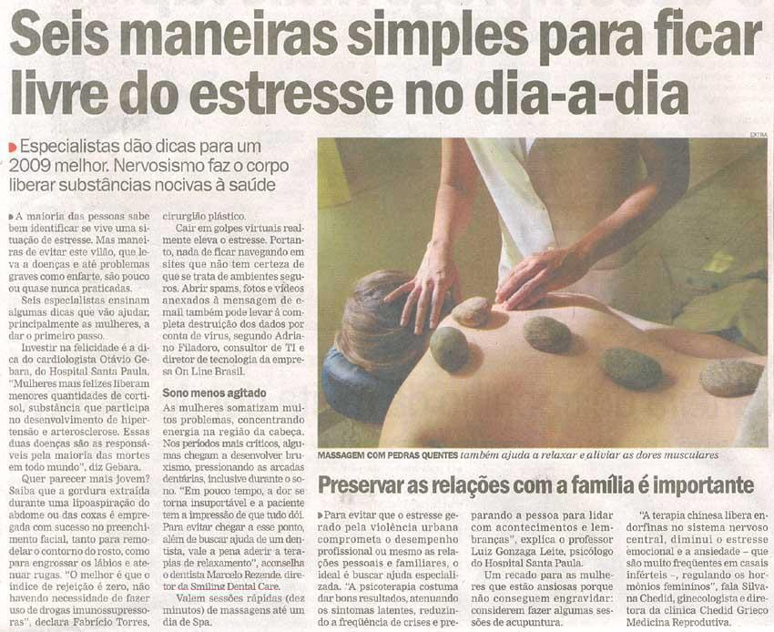 Clipping Diário de S. Paulo (3 Jan) - Seis maneiras simples para ficar livre do estresse no dia-a-dia 05/01/2009
