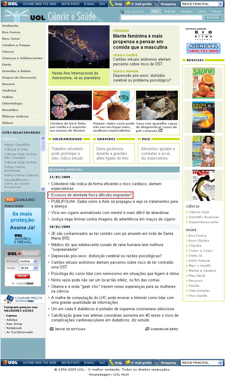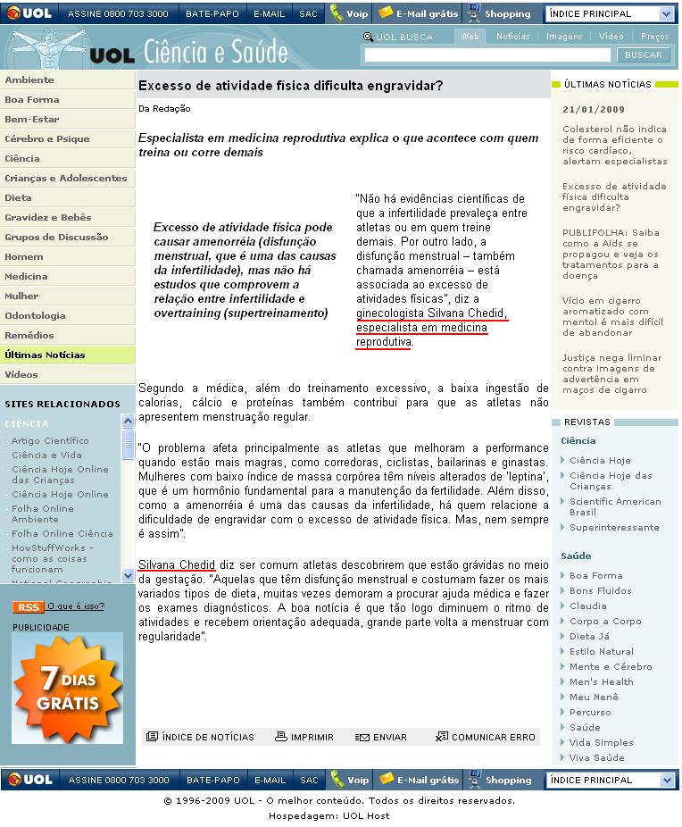Portal UOL (Ciência & Saúde) - Excesso de atividade física dificulta gravidez?