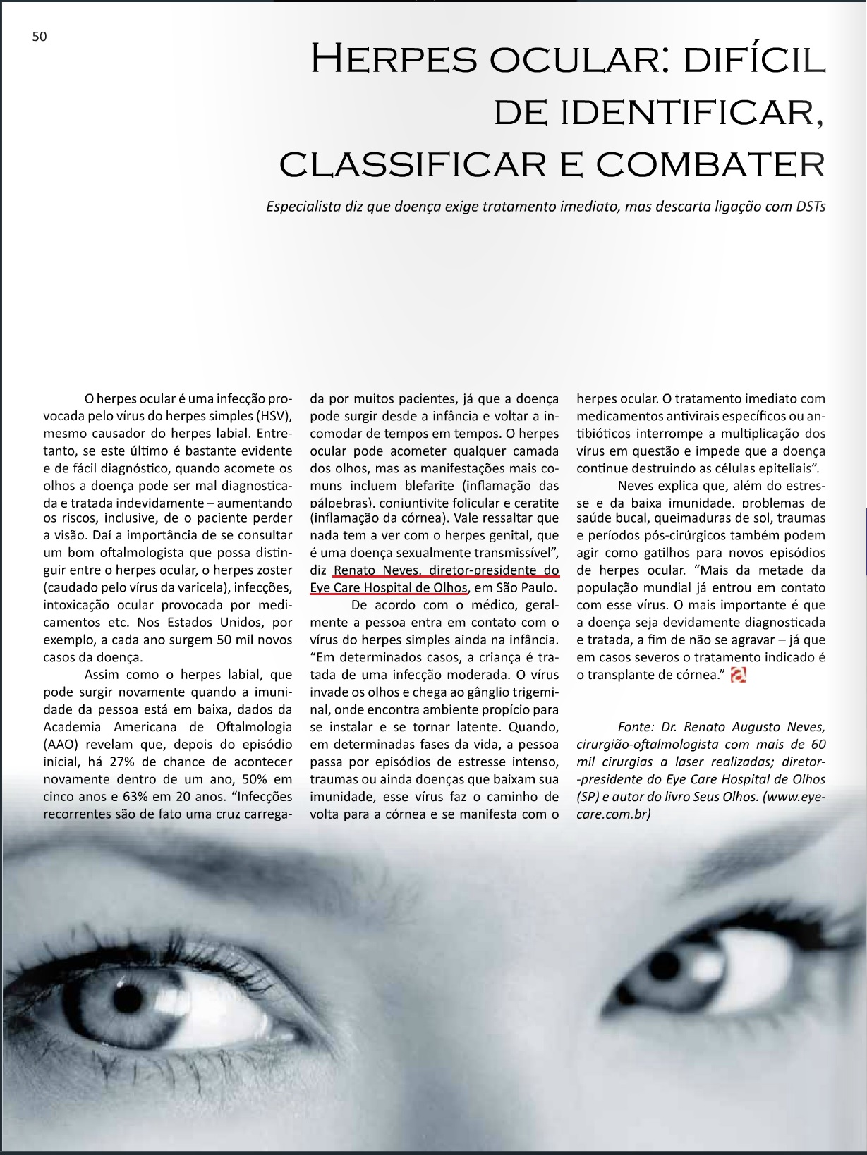Clipping REVISTA ACONTECE (IMPRESSO) - Herpes ocular: difícil de identificar, classificar e combater 17/07/2014