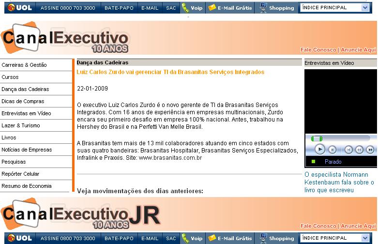 Clipping Portal UOL (Canal Executivo) - Luiz Carlos Zurdo vai gerenciar TI da Brasanitas Serviços Integrados 22/01/2009