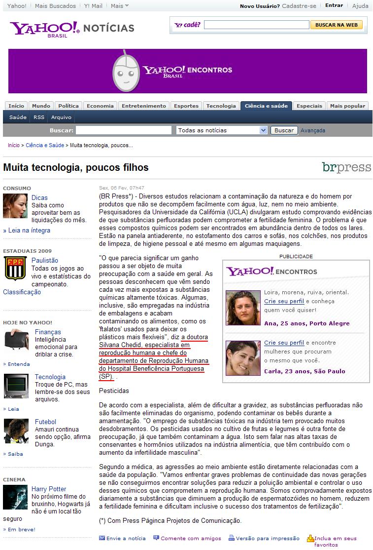Portal Yahoo - Muita tecnologia, poucos filhos