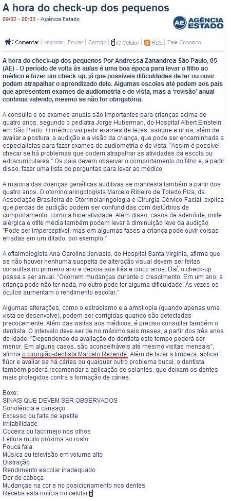 Agência Estado (Chamada de capa + matéria) - A hora do check-up dos pequenos