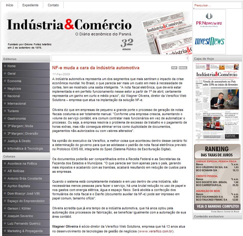 Jornal Indústria & Comércio (17 Fev) - NF-e muda a cara da indústria automotiva