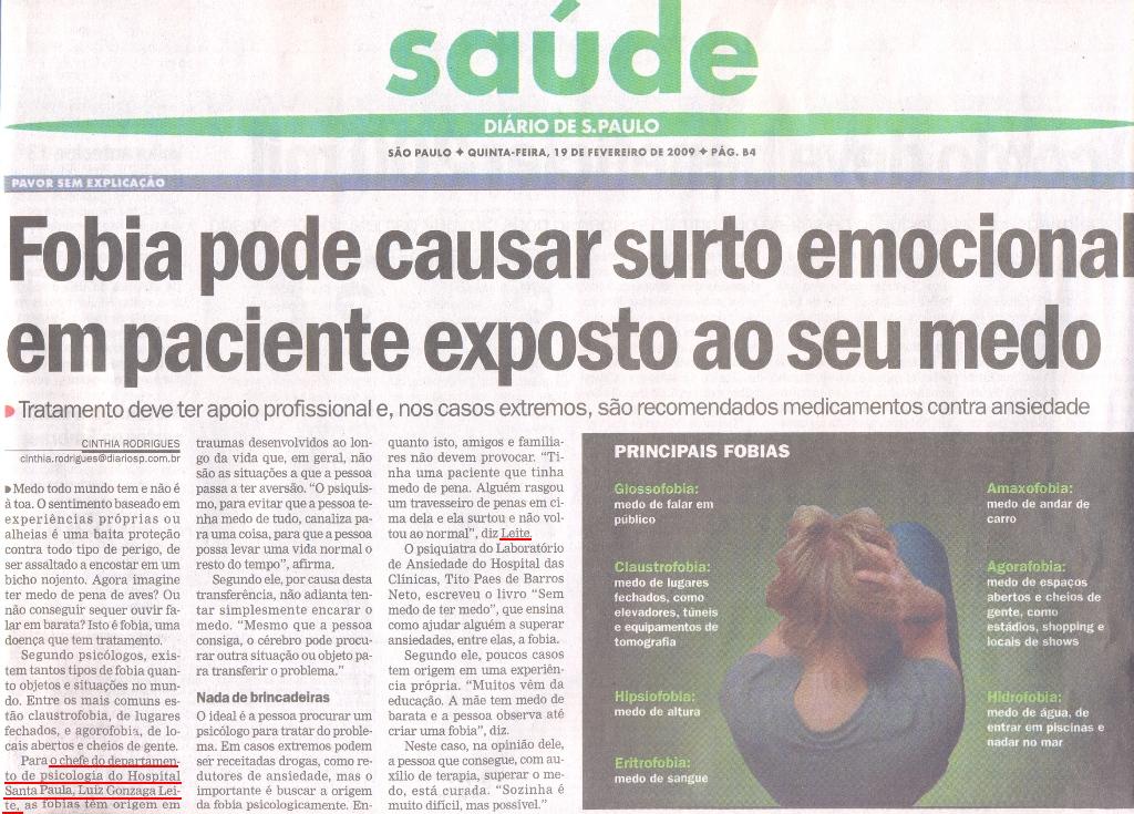 Clipping Diário de S. Paulo (19 Fev) - Fobia pode causar surto emocional em paciente exposto ao seu medo 19/02/2009