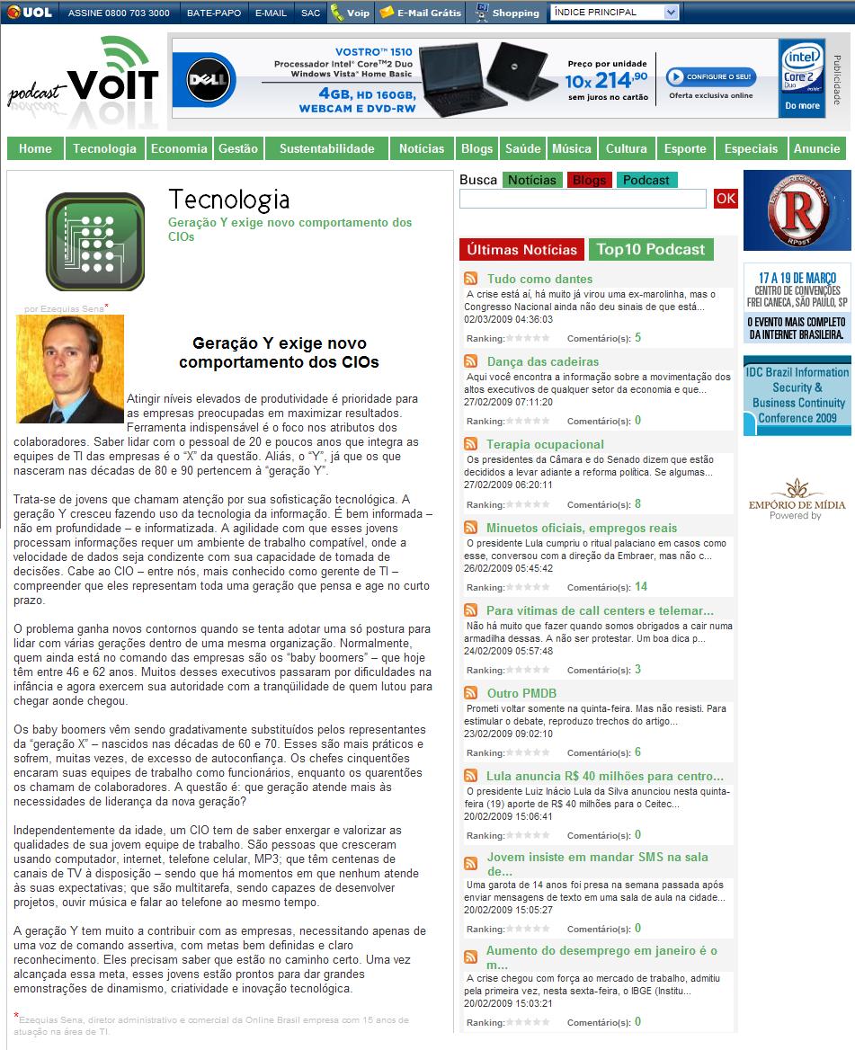 Portal UOL (Tecnologia) - Geração Y exige novo comportamento dos CIOs
