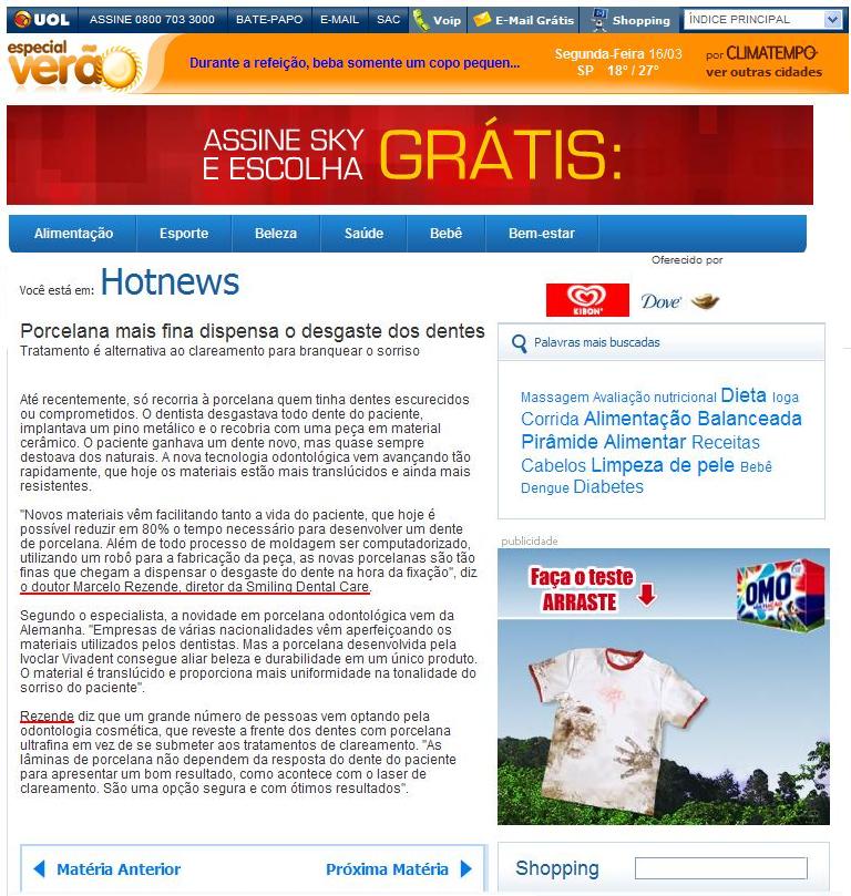 Portal UOL (Especial Verão) - Porcelana mais fina dispensa o desgaste dos dentes