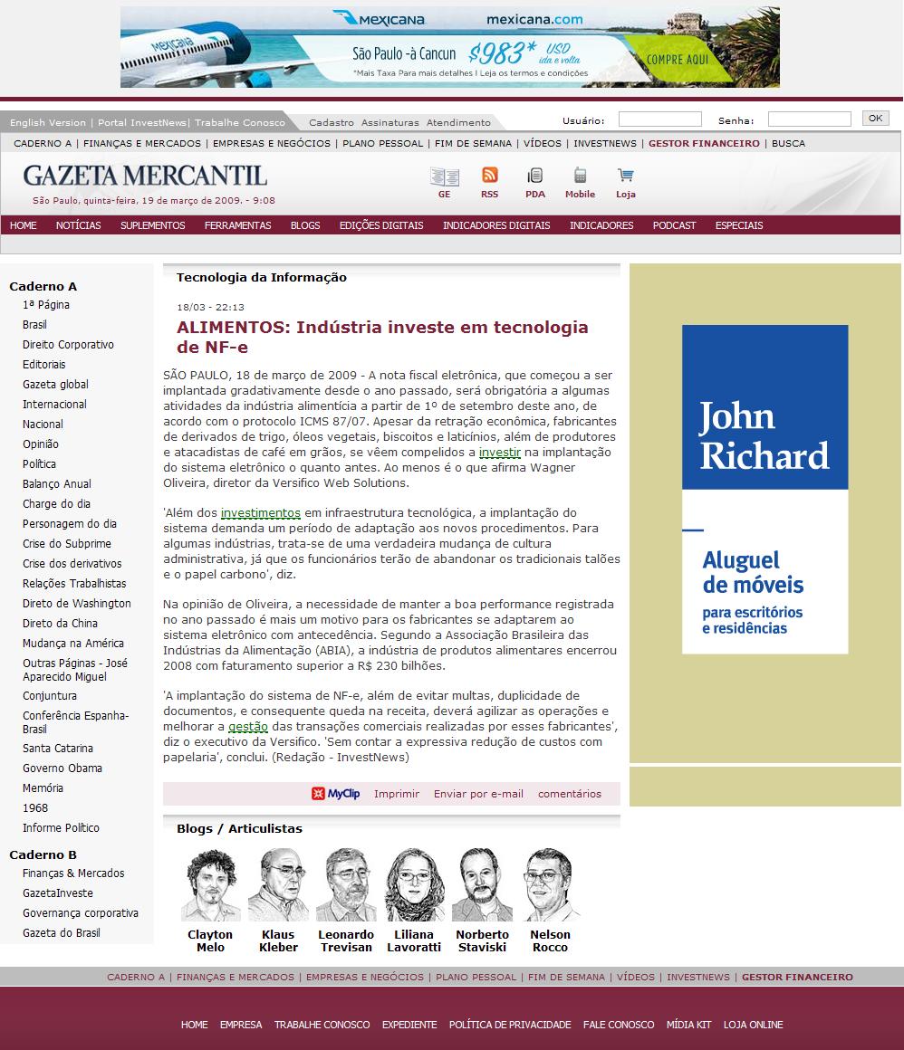 Gazeta Mercantil digital - Alimentos: indústria investe em tecnologia de NF-e
