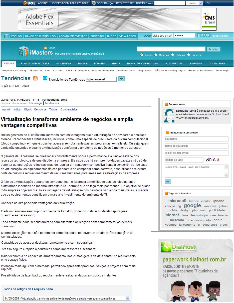 Clipping Portal UOL (Tecnologia) - Virtualização transforma ambiente de negócios e amplia vantagens competitivas 15/05/2009