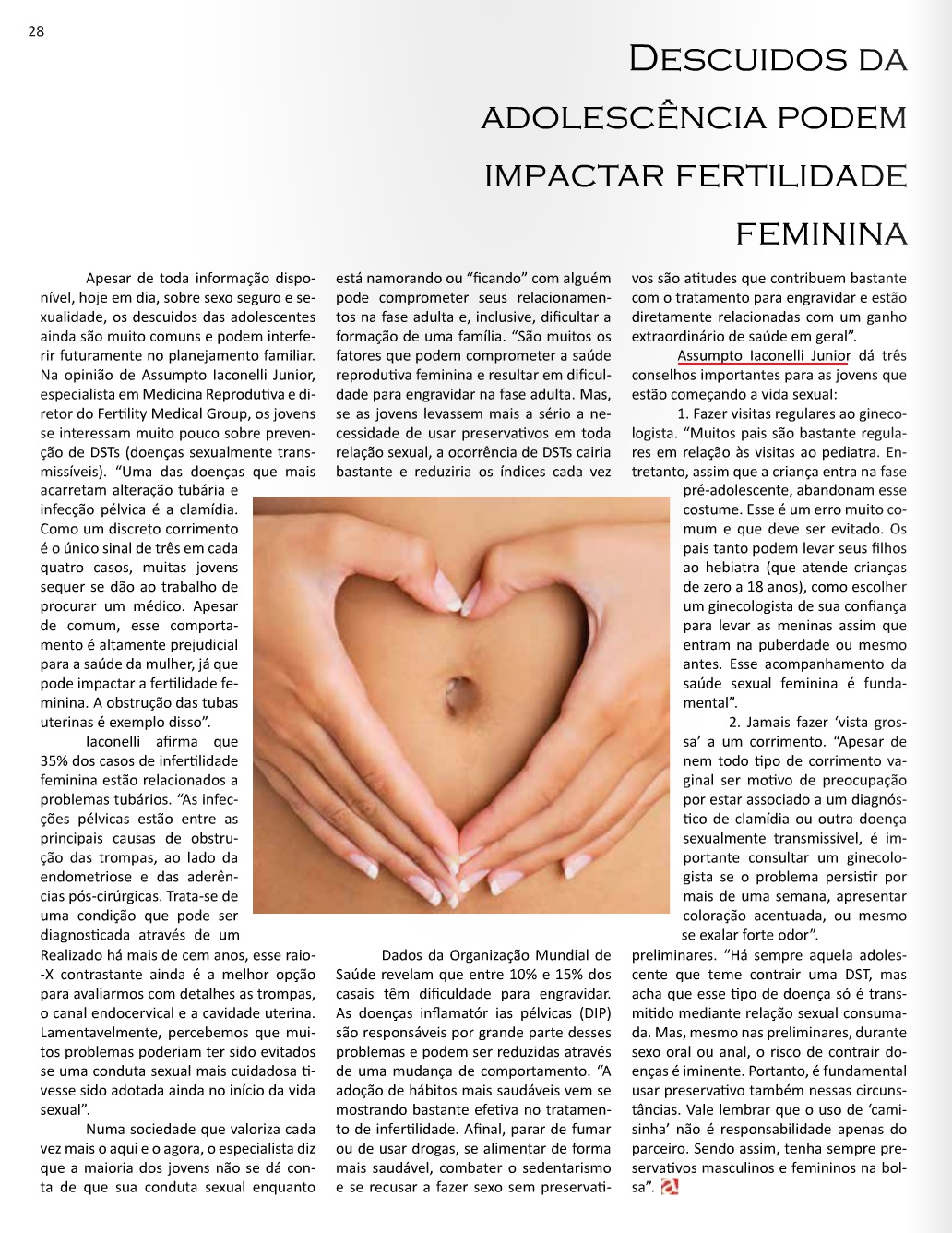 Clipping REVISTA ACONTECE - Descuidos da adolescência podem impactar a fertilidade feminina 20/03/2015
