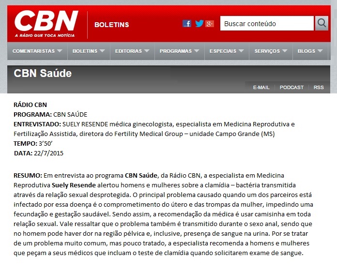 RÁDIO CBN - Entrevista com Dra. Suely Resende
