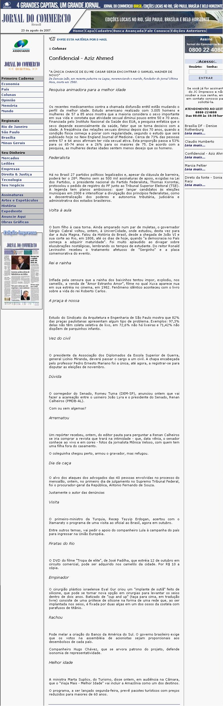 Jornal do Commércio - Impresso e On Line (23 Ago) - Partido Federalista
