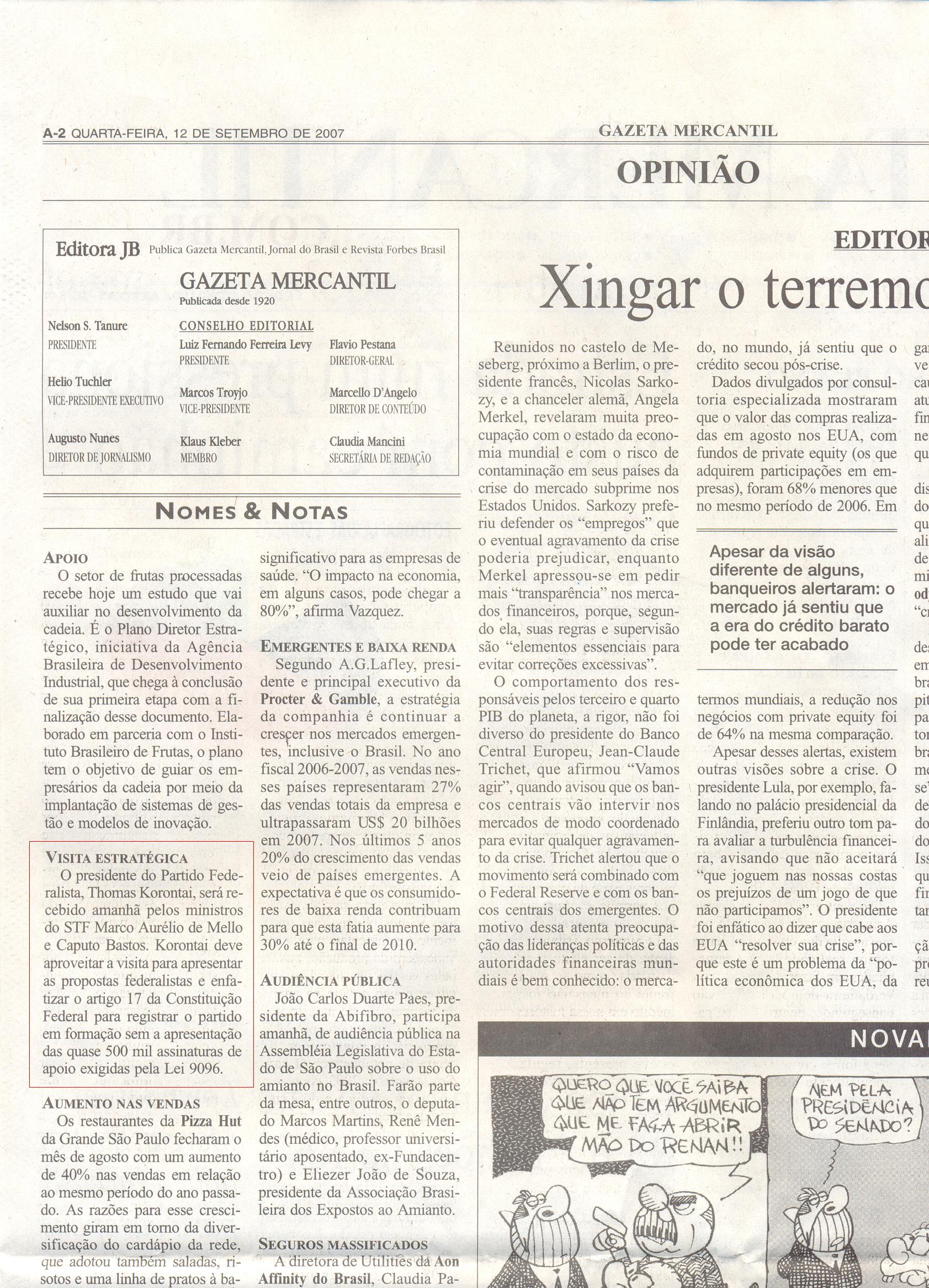 Gazeta Mercantil (12 Set) - Partido Federalista
