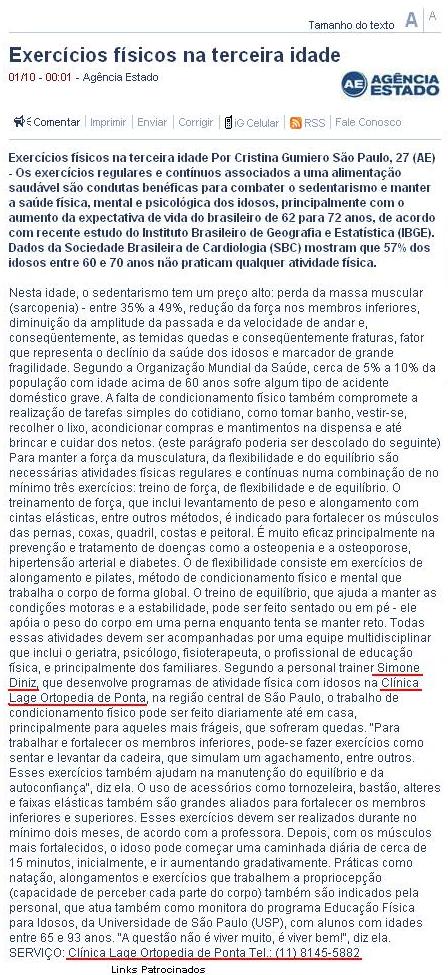 Agência Estado (AE) - Clínica Lage Ortopedia de Ponta