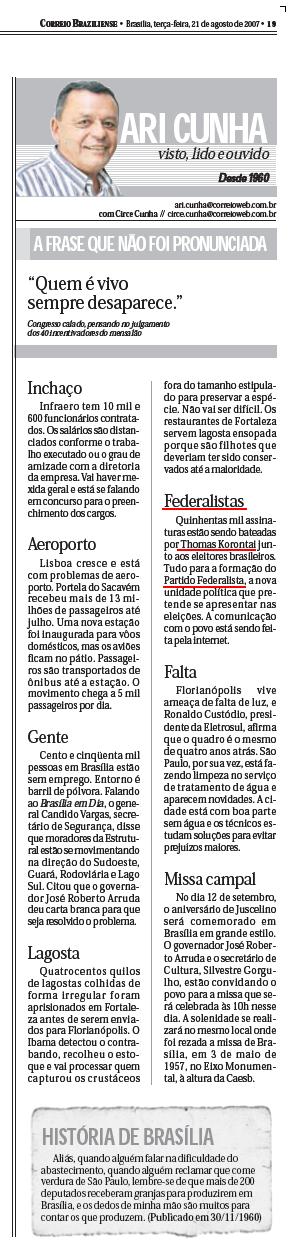 Correio Braziliense - Impresso e On Line (21 Ago) - Partido Federalista