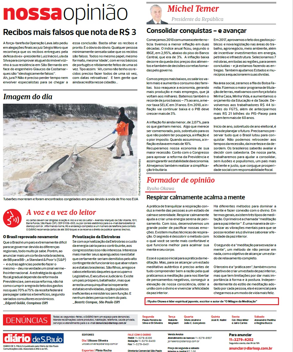DIÁRIO DE S.PAULO (IMPRESSO) - Respirar calmamente acalma a mente