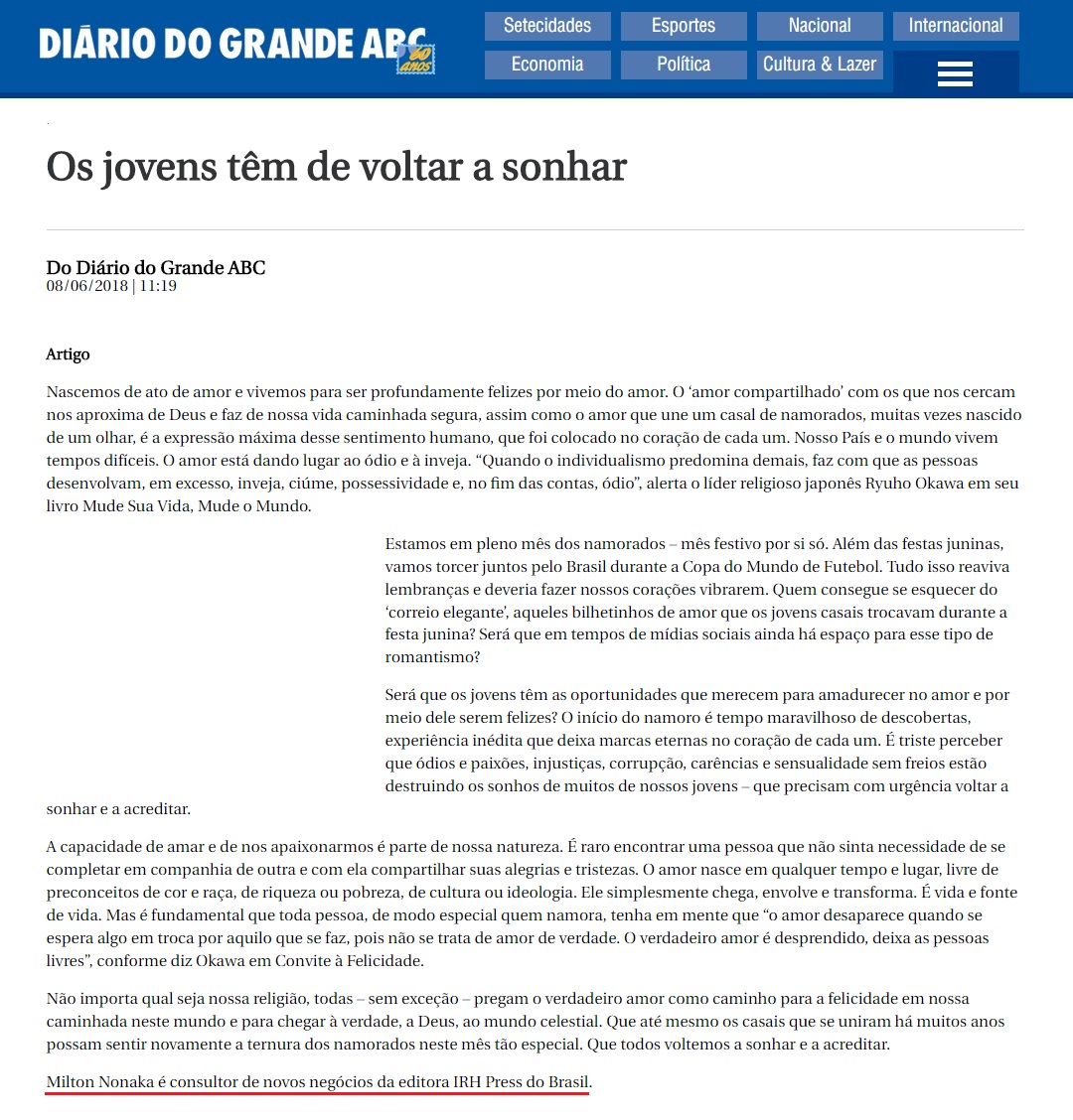 DIÁRIO DO GRANDE ABC (ONLINE) - Os jovens têm de voltar a sonhar