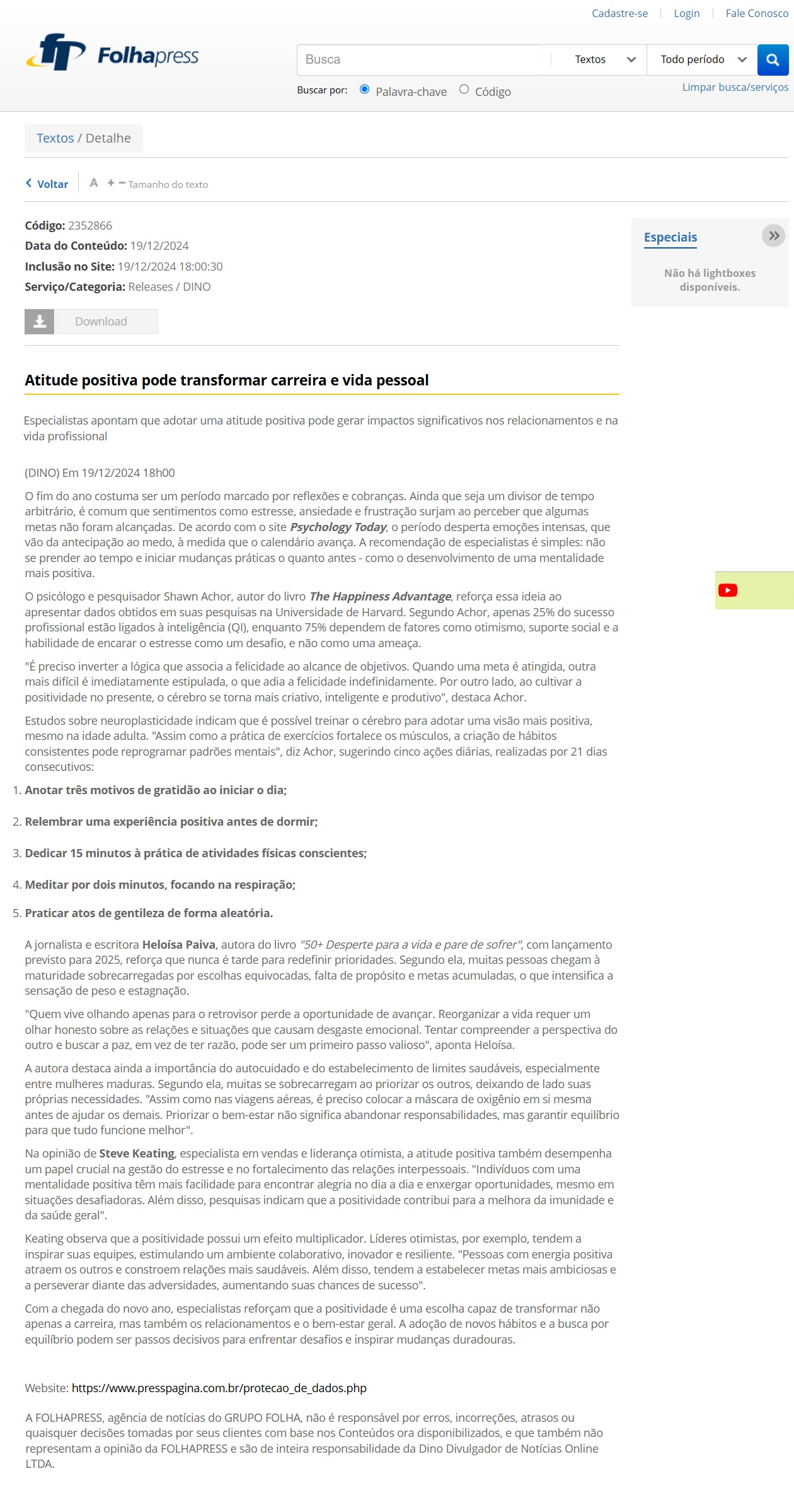 GRUPO FOLHA - Atitude positiva pode transformar carreira e vida pessoal