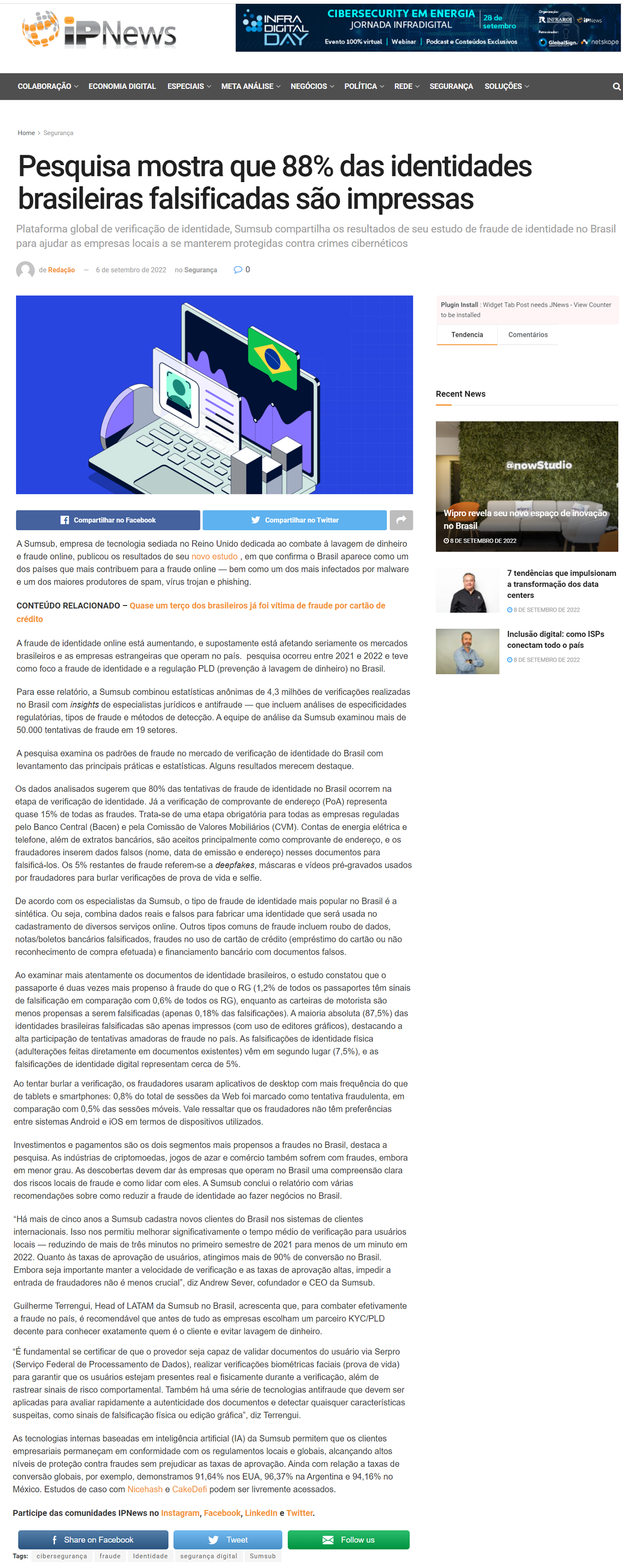 IPNEWS (Tier 1) - 88% das identidades brasileiras falsificadas são impressas