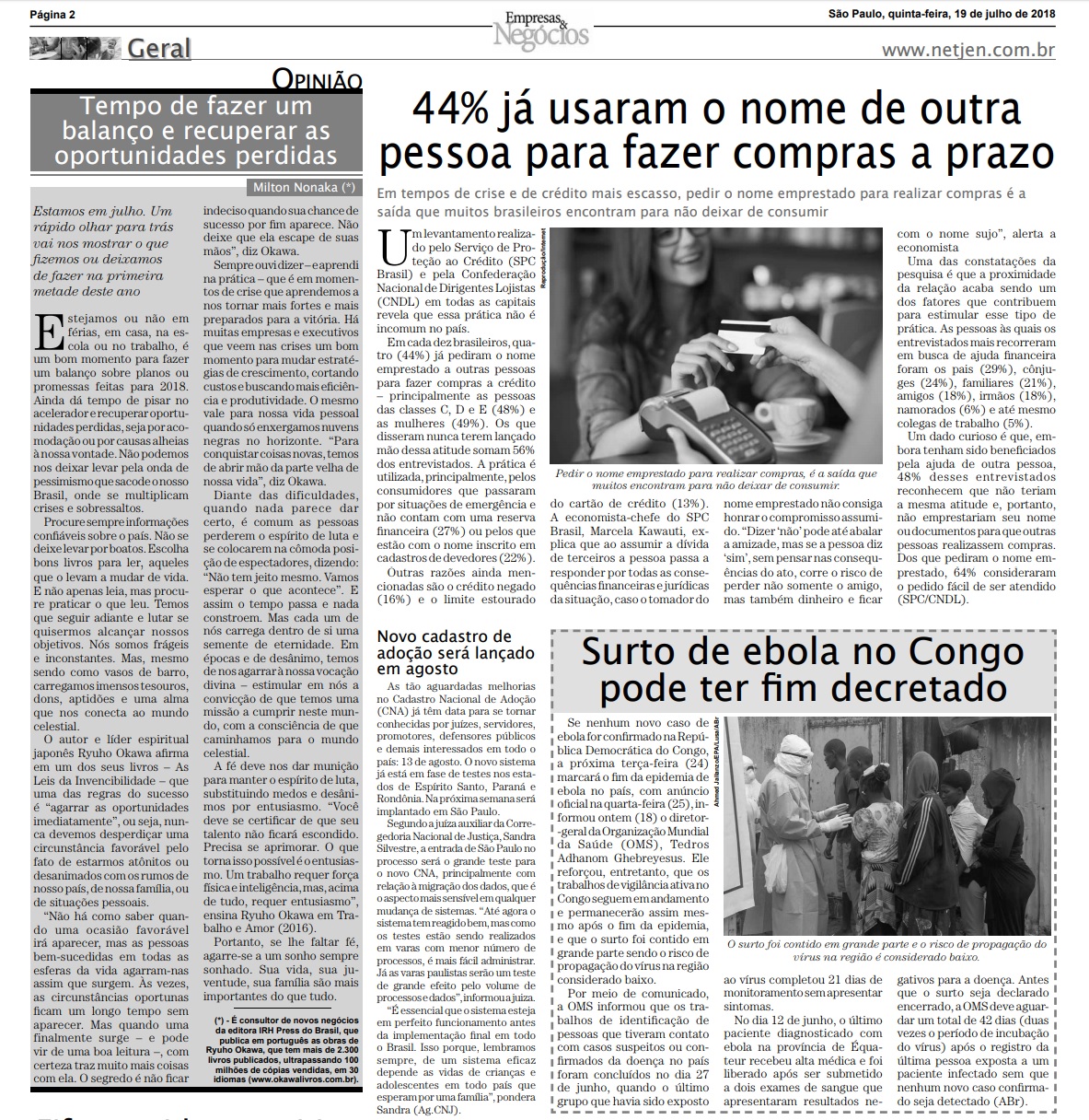 JORNAL EMPRESAS & NEGÓCIOS - É tempo de recuperar oportunidades perdidas