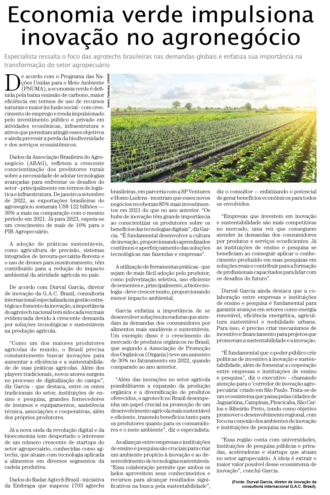 Clipping JORNAL EMPRESAS & NEGÓCIOS (IMPRESSO) - Economia verde impulsiona inovação no agronegócio 29/04/2023