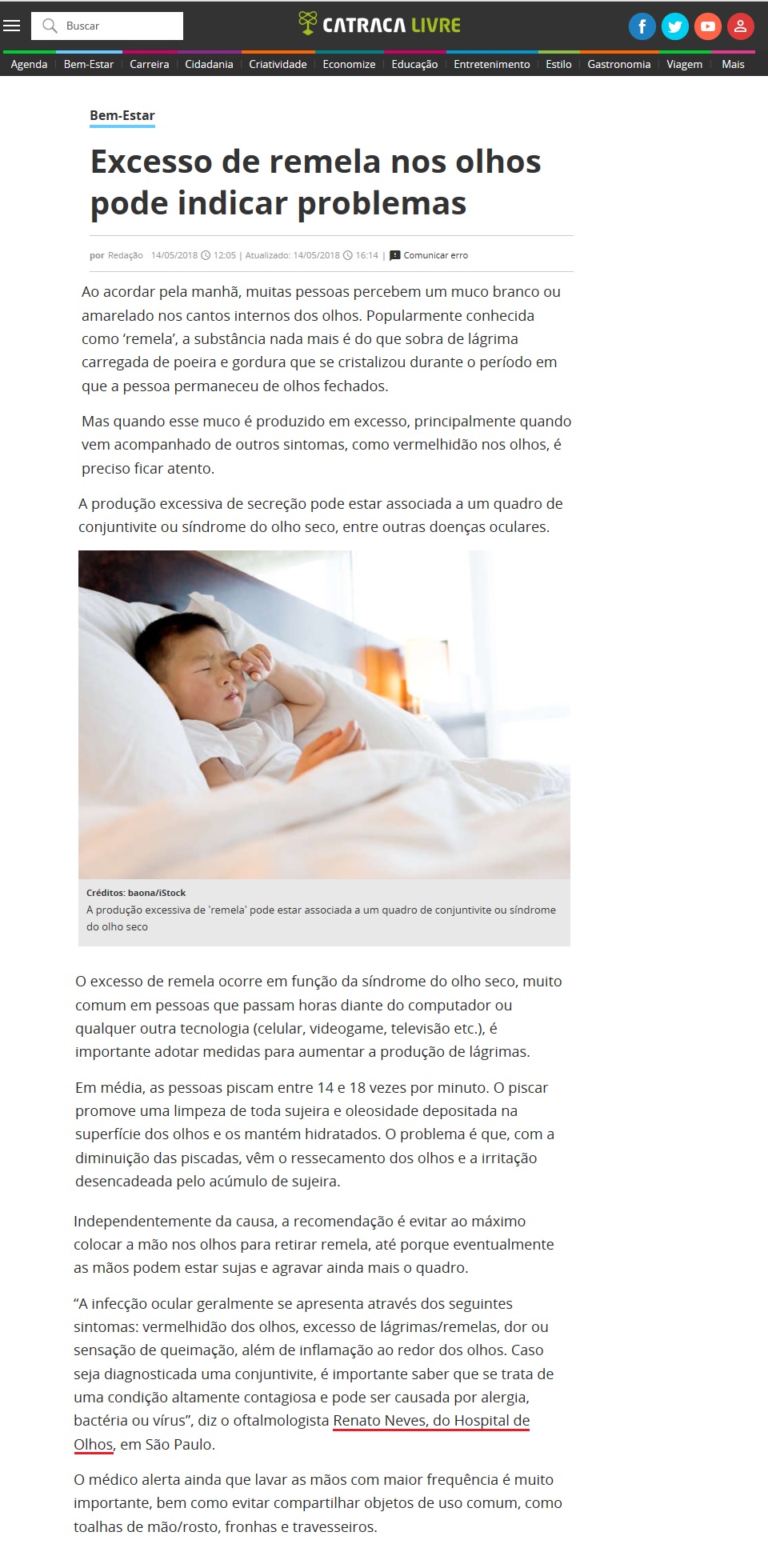 PORTAL CATRACA LIVRE - Excesso de remela nos olhos pode indicar problemas