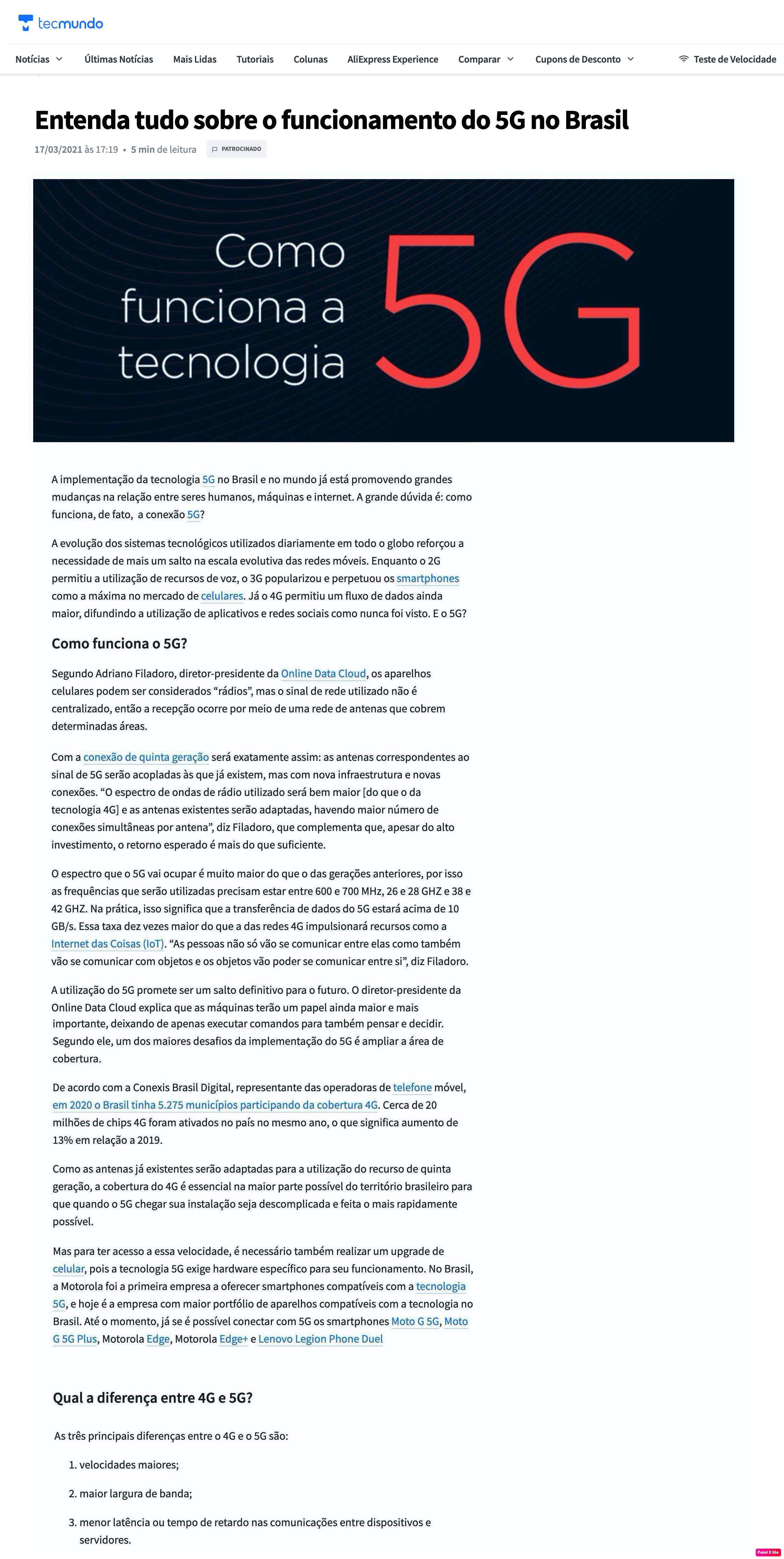 PORTAL TECMUNDO - Entenda tudo sobre o funcionamento do 5G no Brasil