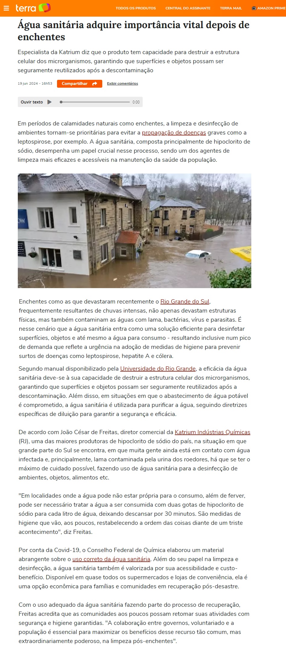 PORTAL TERRA - Água sanitária adquire importância vital depois de enchentes