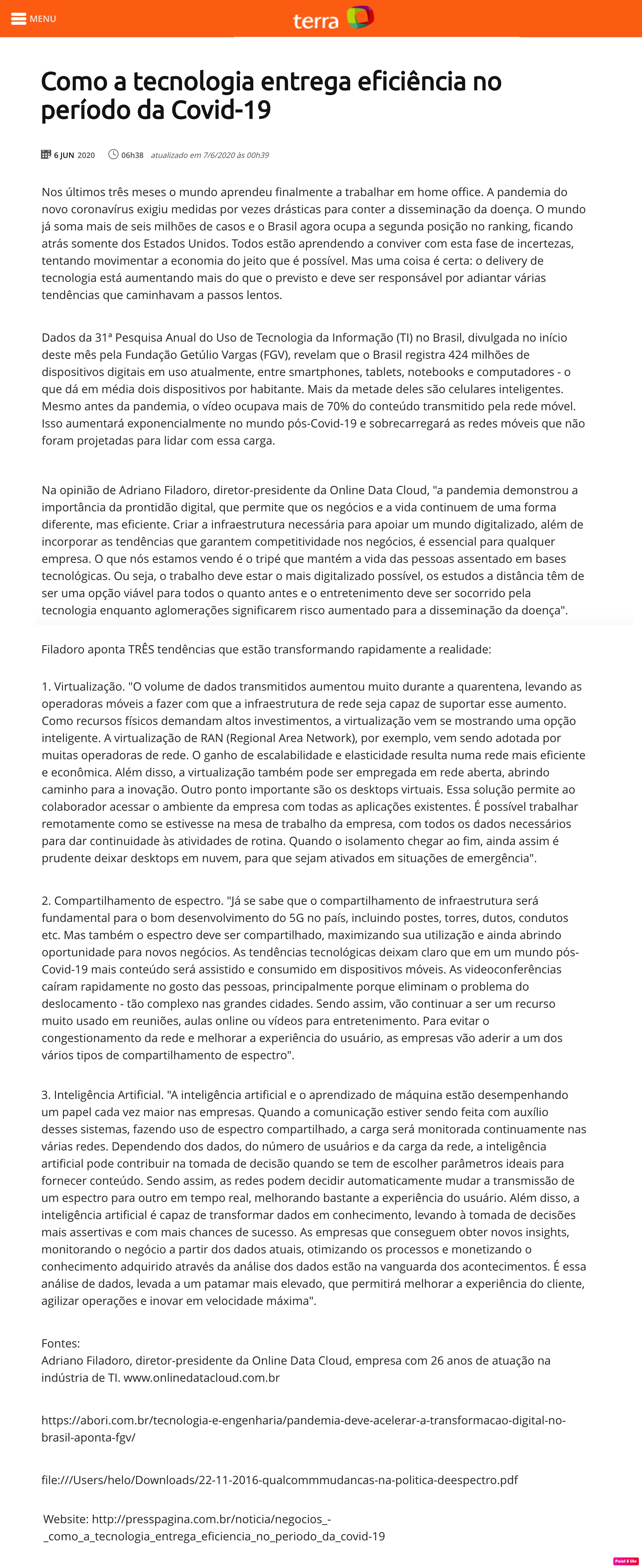 PORTAL TERRA - Como a tecnologia entrega eficiência no período da covid-19