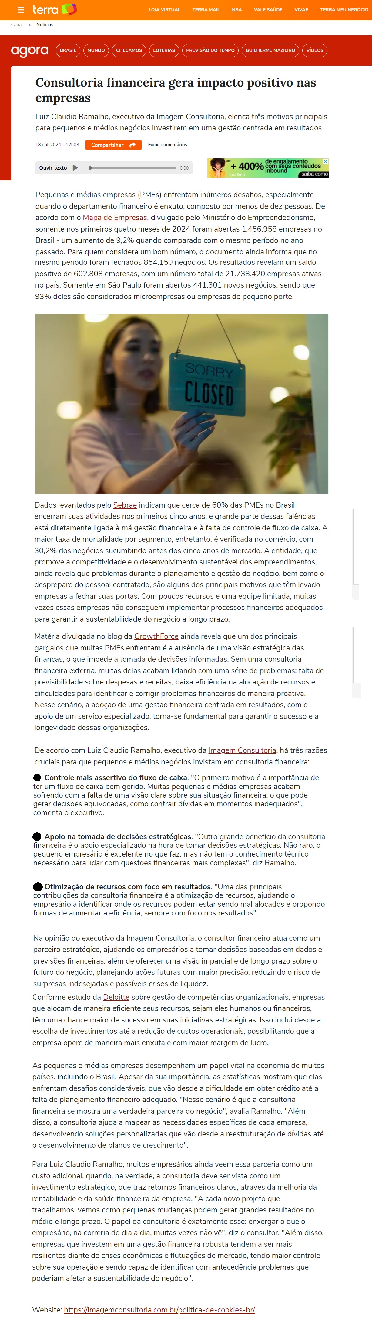 PORTAL TERRA - Consultoria financeira impacta PMEs positivamente