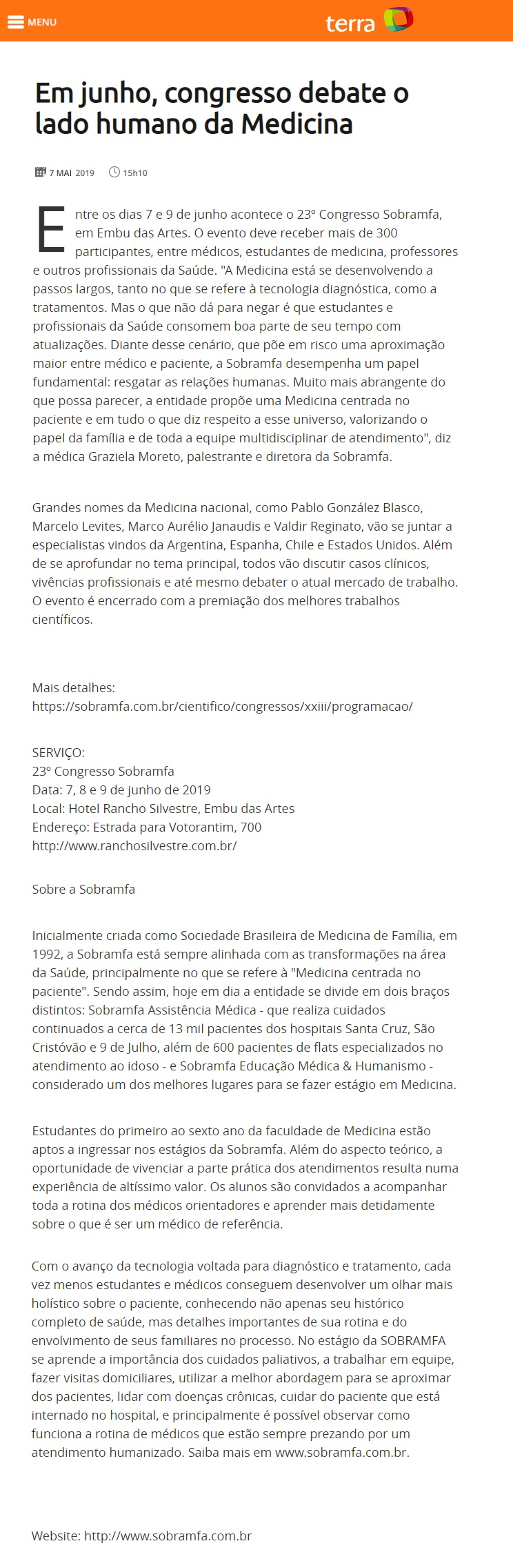 PORTAL TERRA - Em junho, congresso debate o lado humano da Medicina