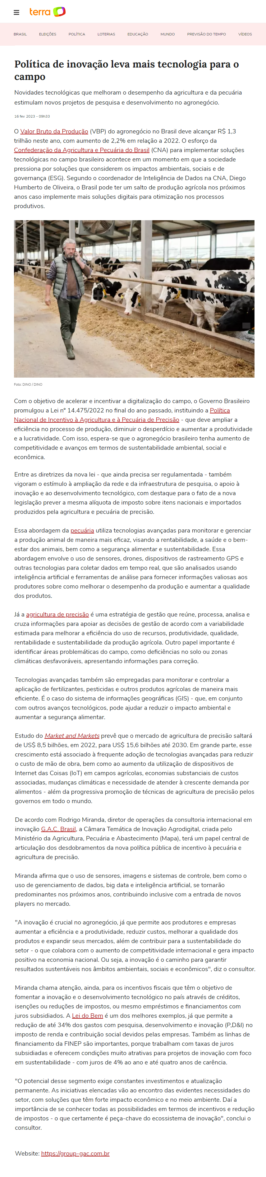 PORTAL TERRA - Política de inovação leva mais tecnologia para o campo