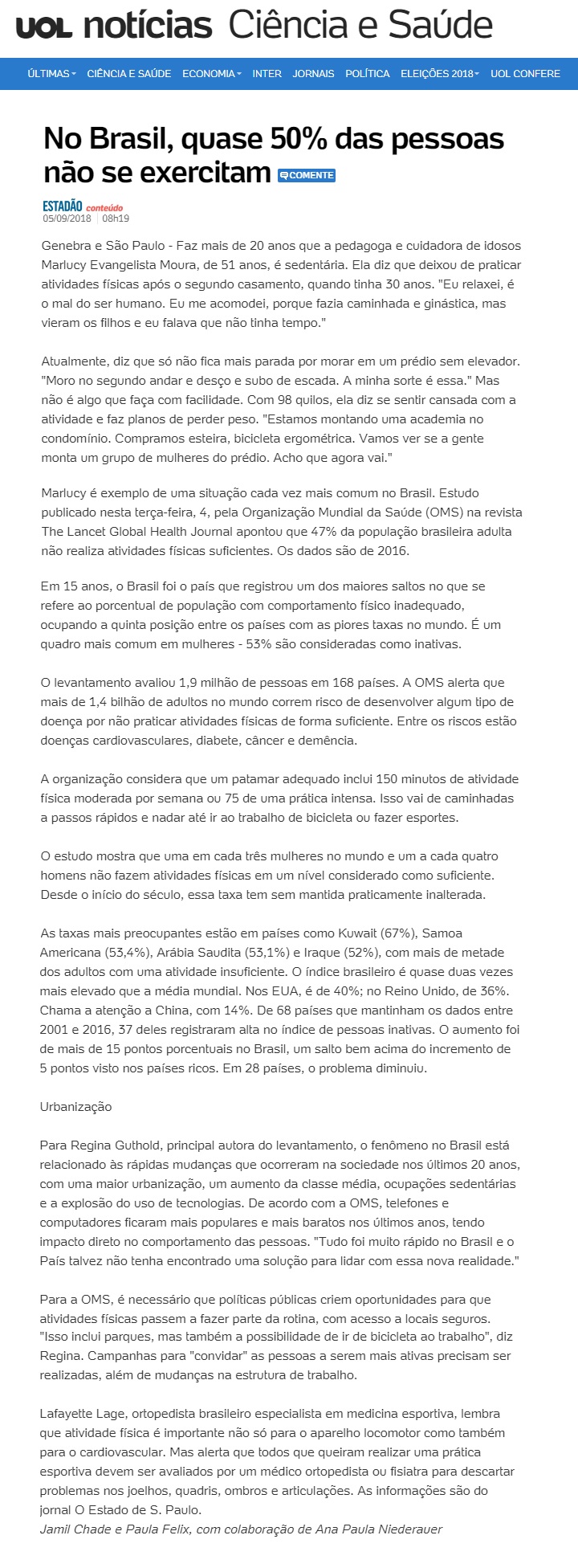 PORTAL UOL - No Brasil, quase 50% não se exercitam, diz OMS