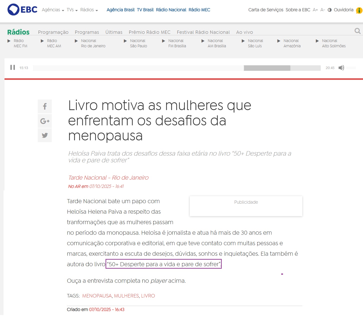 Clipping PROGRAMA TARDE NACIONAL - Livro motiva mulheres que enfrentam os desafios da menopausa 08/10/2025