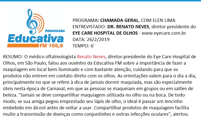 RÁDIO EDUCATIVA FM (PIRACICABA) ALERTA SOBRE O RISCO DE COMPARTILHAR MAQUIAGEM