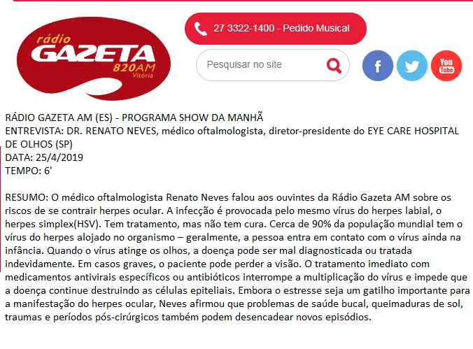 RÁDIO GAZETA AM - Cuidados com o herpes ocular