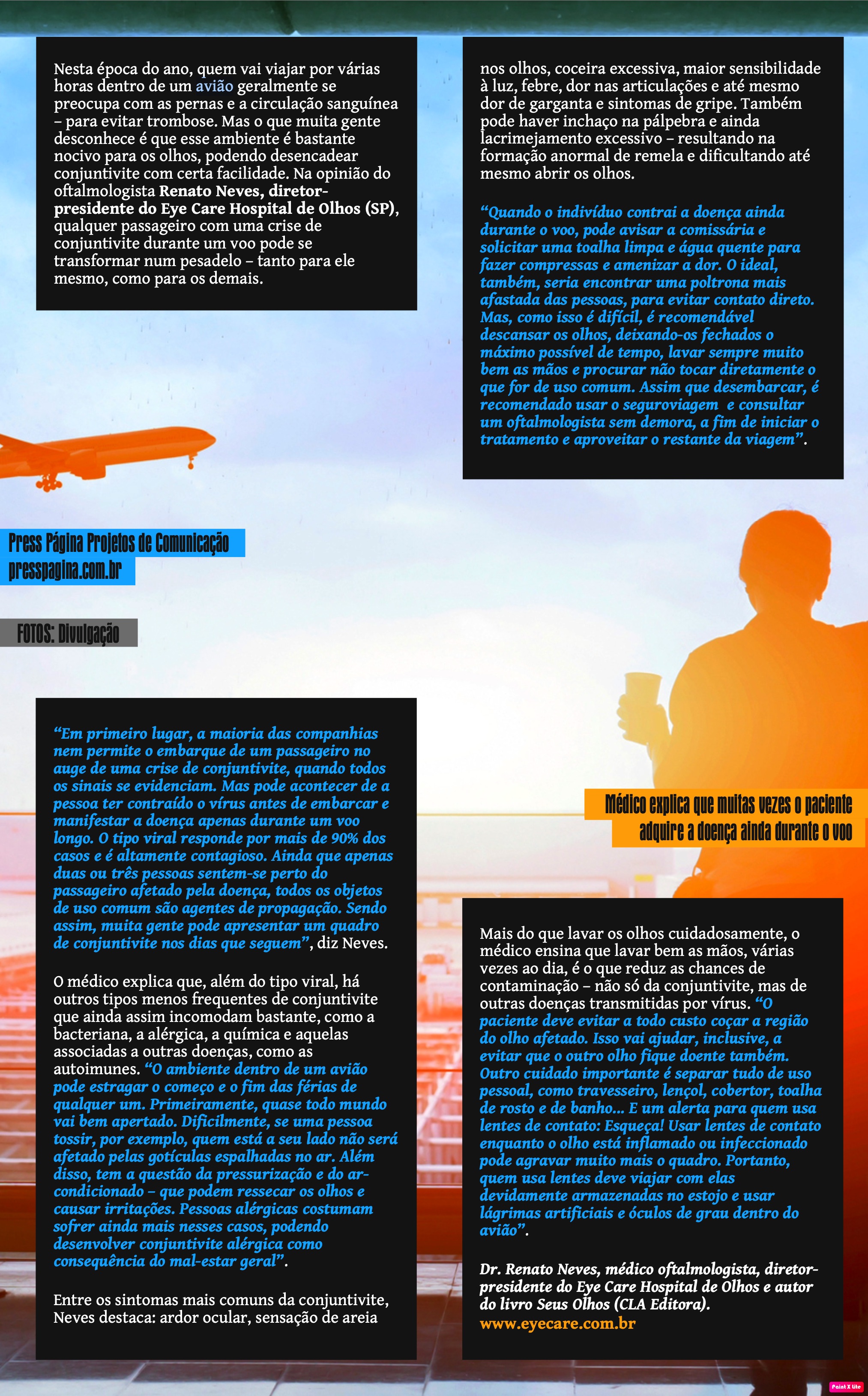 REVISTA 24H (IMPRESSO) - Viajar de avião com conjuntivite exige cuidados