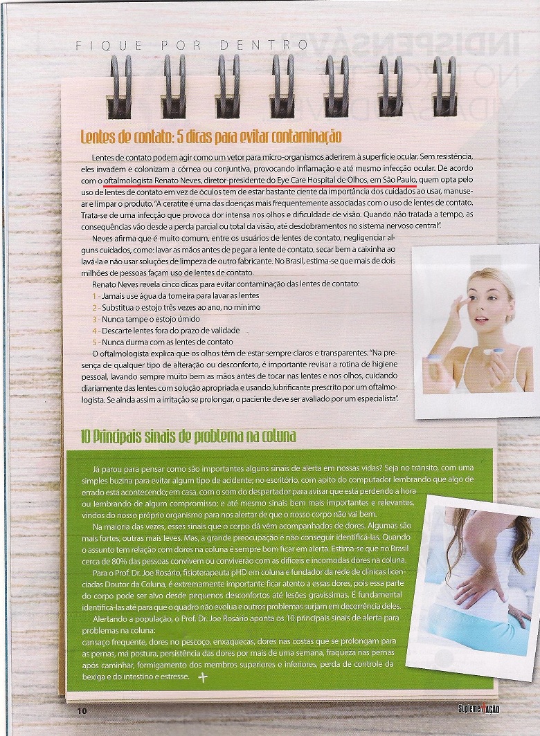 Clipping REVISTA SUPLEMENTAÇÃO (IMPRESSO) - Lentes de contato: 5 dicas para evitar a contaminação 18/05/2017