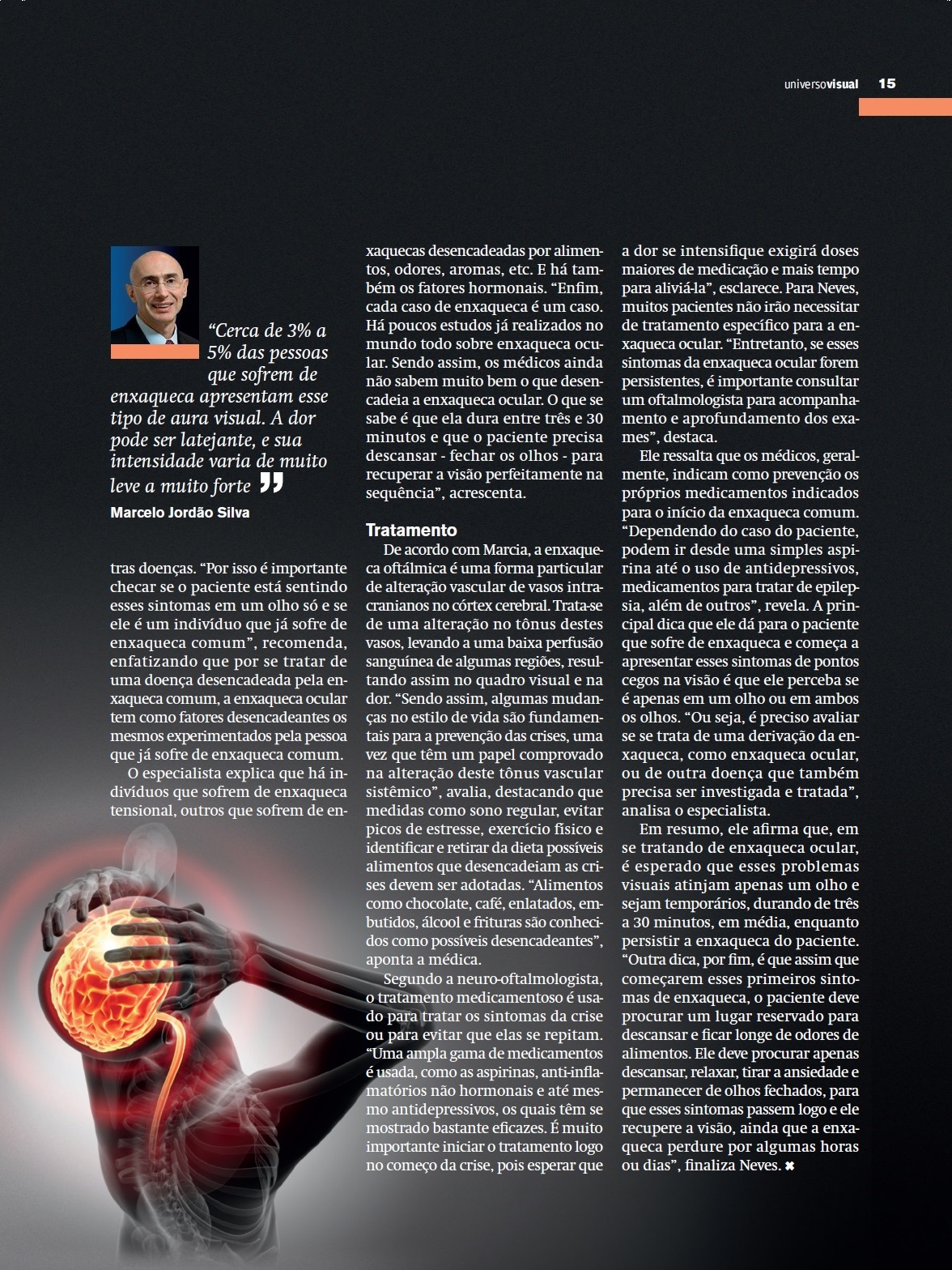 Clipping REVISTA UNIVERSO VISUAL (IMPRESSO) - Enxaqueca ocular: sintomas, causas, diagnóstico e tratamento 07/12/2017