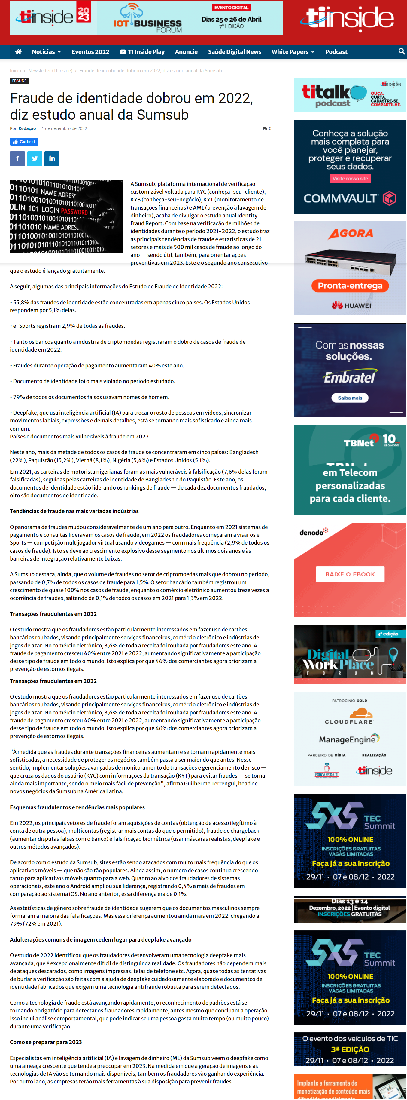 TI INSIDE - Fraude de identidade dobrou em 2022, diz estudo da Sumsub