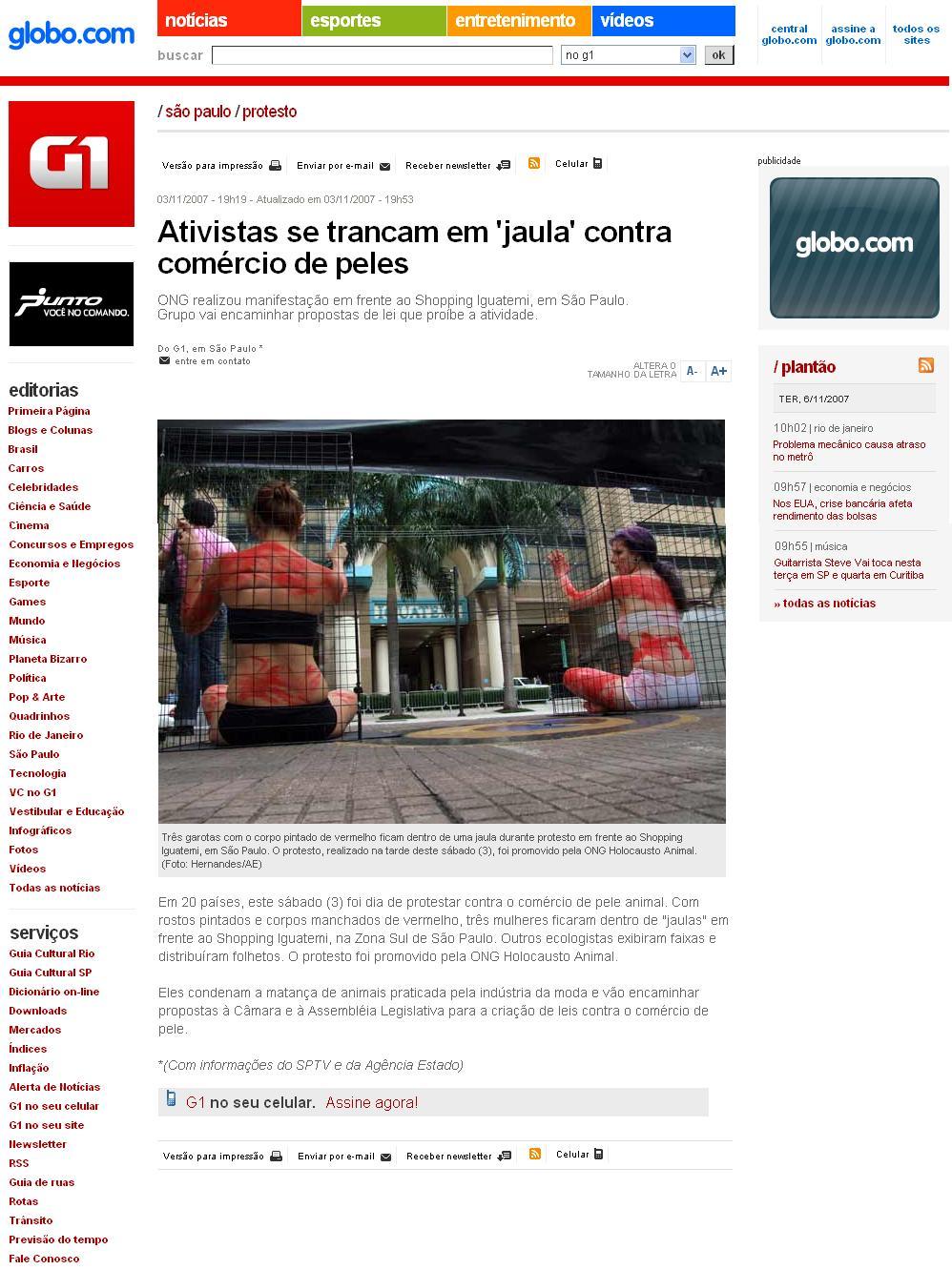Portal G1 - ONG Pelo Fim do Holocausto Animal