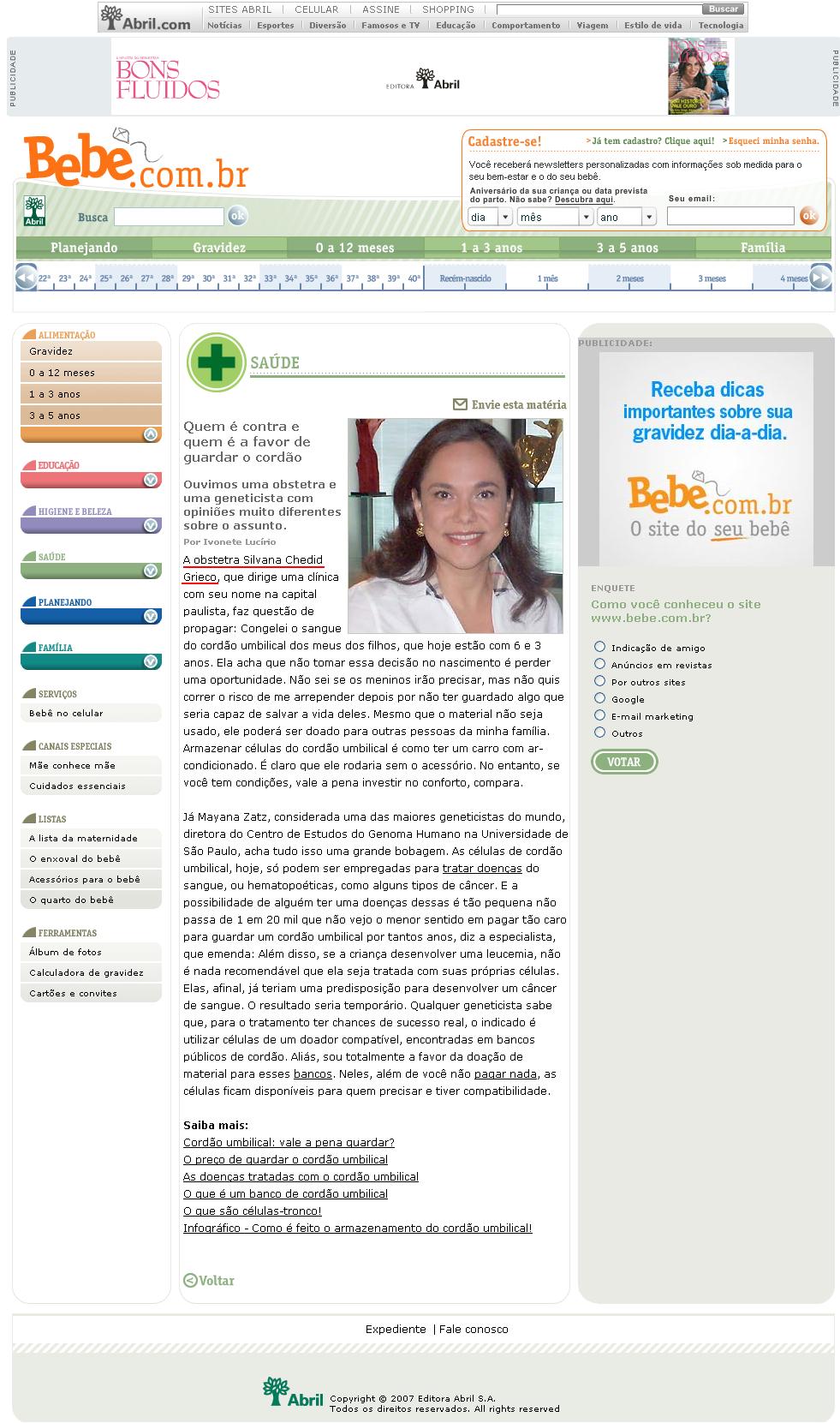 Portal Bebe.com (Editora Abril) - Dra. Silvana Chedid