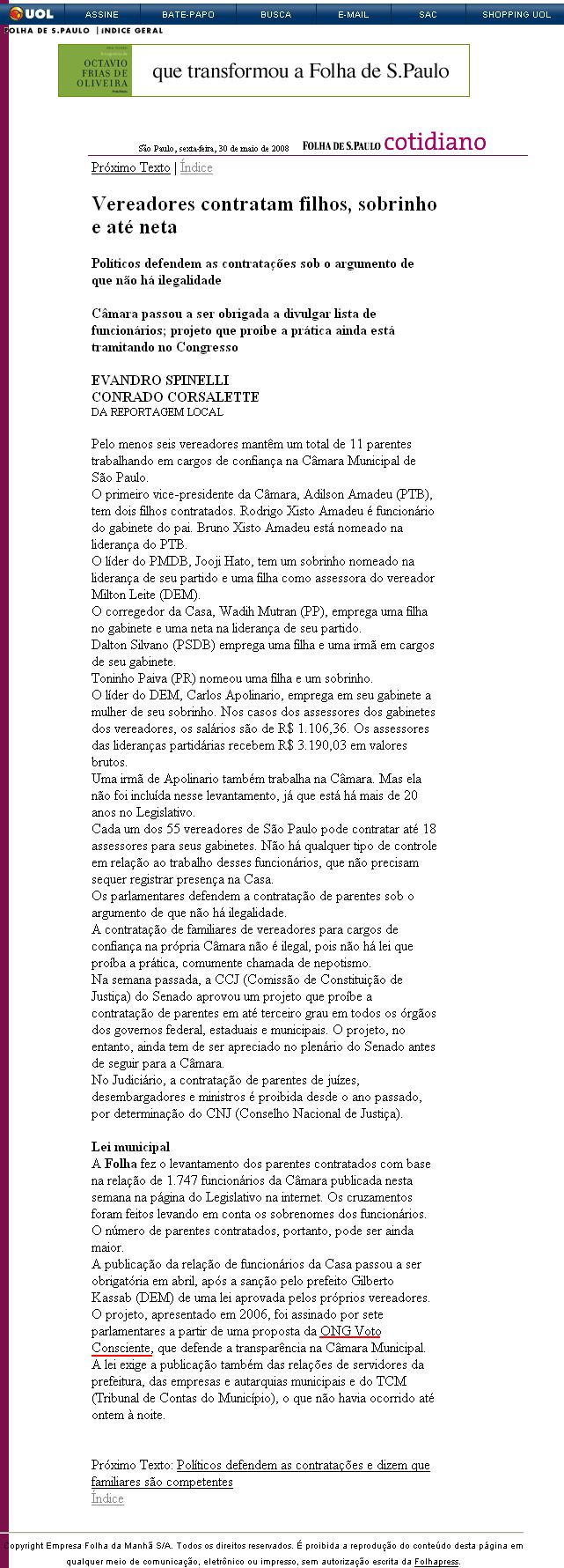 Folha de S. Paulo (30 Mai) - Movimento Voto Consciente