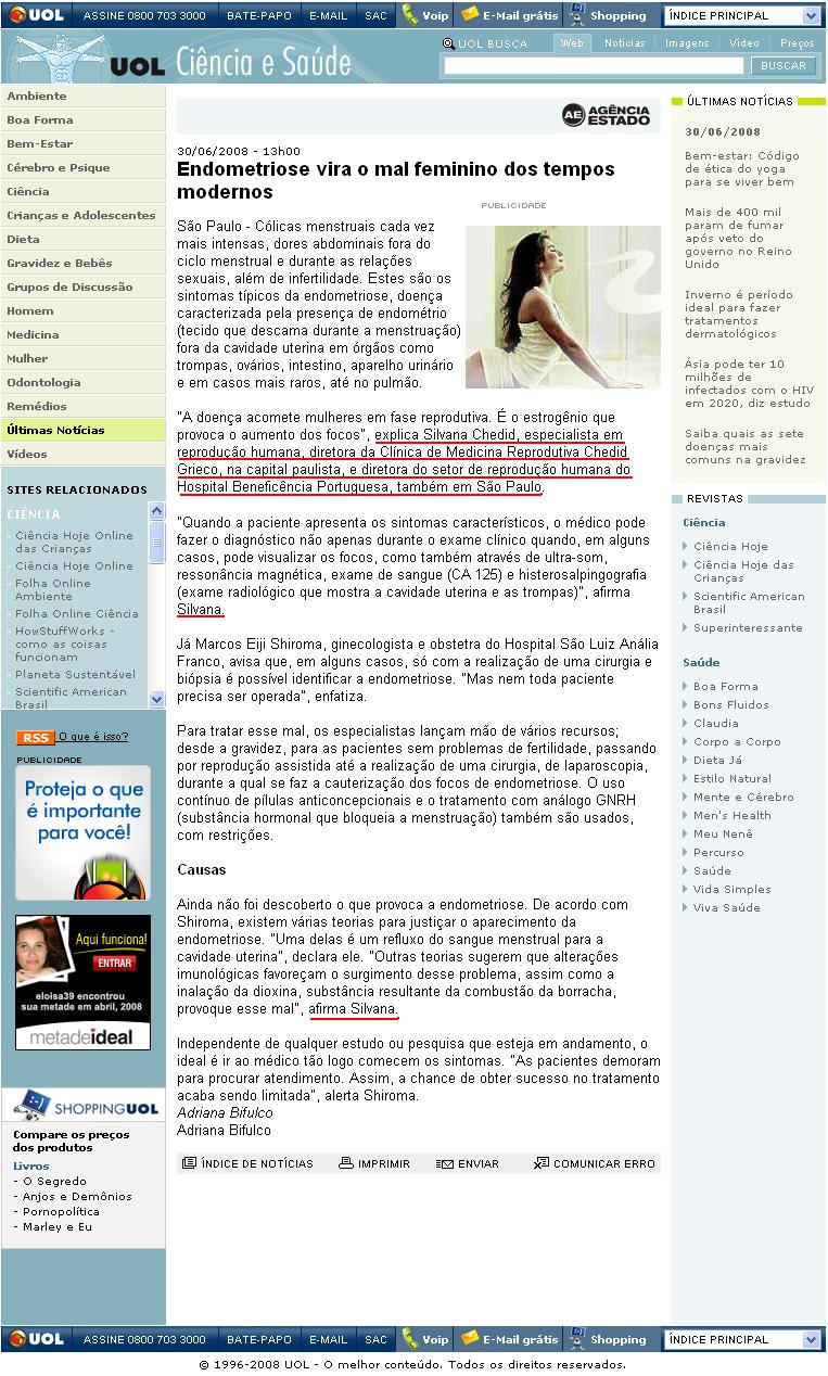 Portal UOL (Ciência & Saúde) - Dra. Silvana Chedid