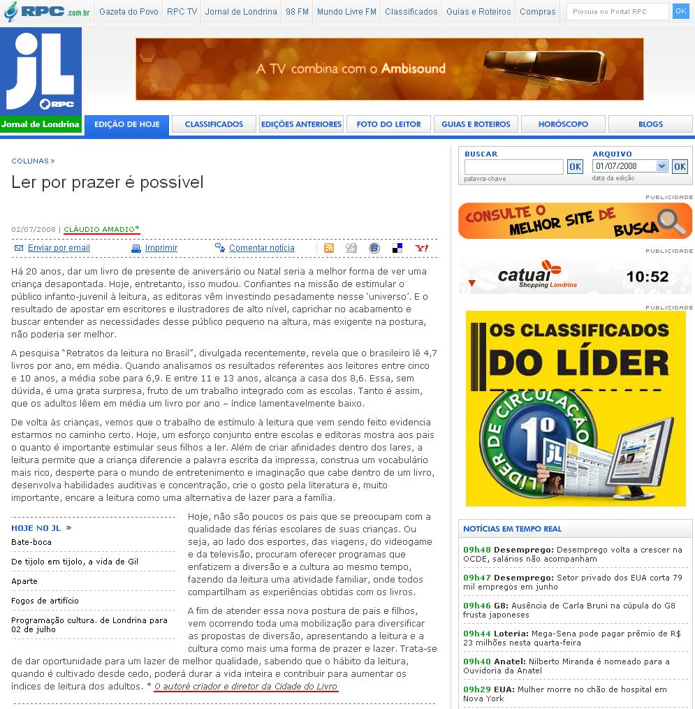 Jornal de Londrina (2 Jul) - Cidade do Livro
