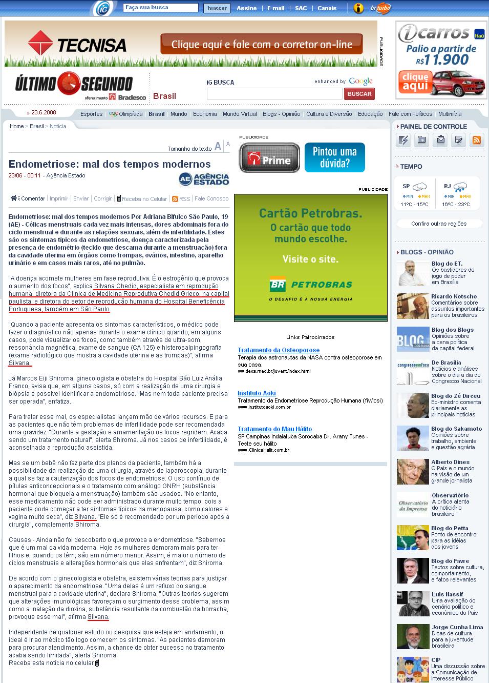 Portal IG (Último Segundo) - Clínica Chedid Grieco