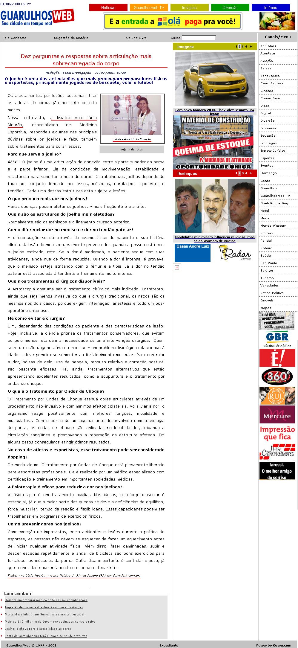 Clipping Guarulhos Web - Dez perguntas e respostas sobre a articulação mais sobrecarregada do corpo 01/08/2008