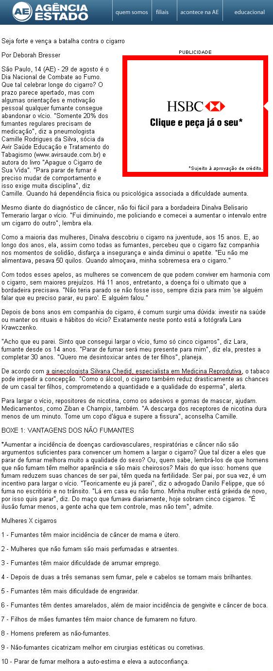 Agência Estado (AE) - Seja forte e vença a batalha contra o cigarro
